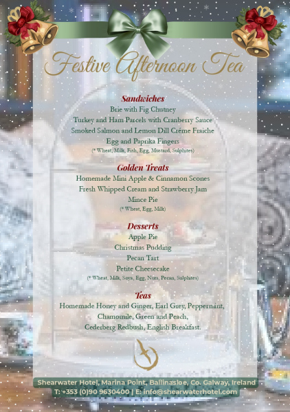 For bookings please email events@shearwaterhotel.com or call 090 96 30 400